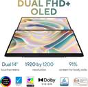 Designed with a dual 16:10 35.56 cm (14) FHD+ 1920x1200p ASUS Lumina OLED touch display, this laptop enhances your visual experience. Moreover, with up to 500 nits of brightness and up to 91% screen-to-body ratio, this laptop provides an immersive viewing experience.