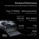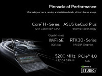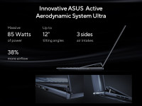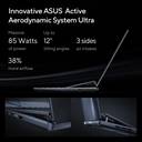 The ASUS IceCool Plus cooling solution uses two quiet IceBlades fans with up to 97 3D-curved propellers to cool the two 8 mm heat pipes from the CPU and GPU. Additionally, the optimised 20 mm lift of the unique AAS Ultra mechanism allows for up to 38% more hot air to be evacuated outdoors. As a result, the CPU and GPU can run at a combined TDP of up to 85 W without experiencing any performance limitations.