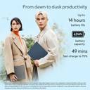 You can remain working for a long time thanks to the 63 Wh battery life of the Zenbook S 13 OLED. Additionally, you don't have to stop when it's time to recharge since rapid charging allows you to fill it back up quickly.