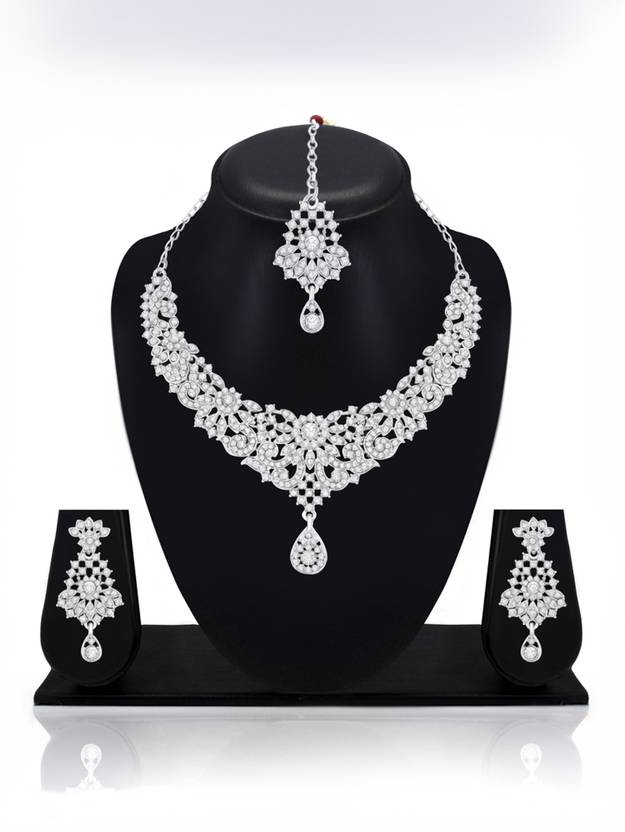 Atasi International Alloy Rhodium Silver Jewellery Set (Pack of 1)