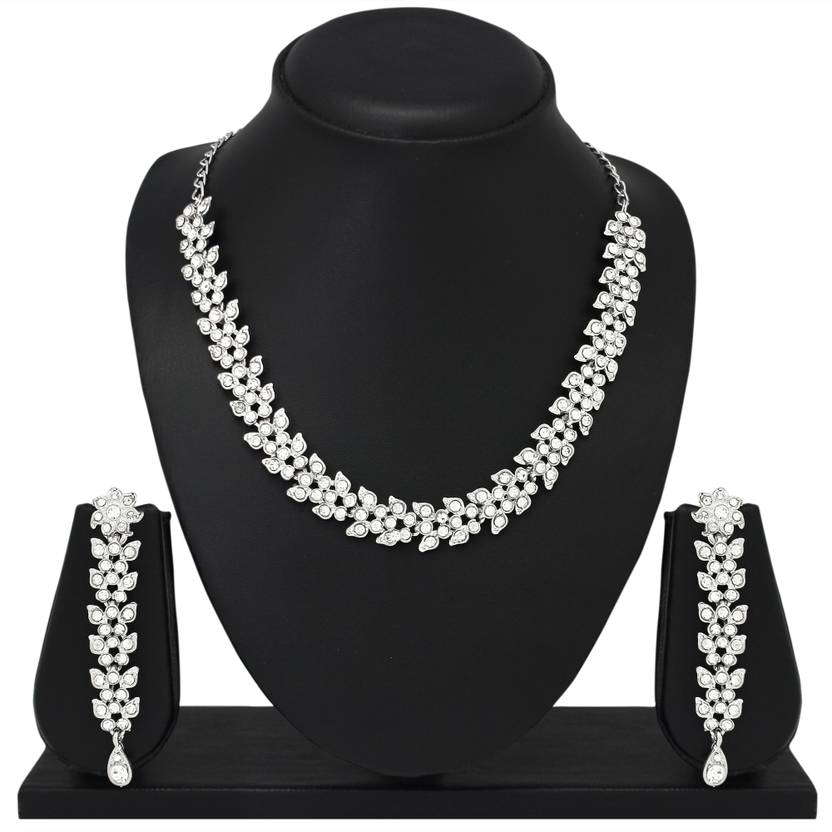 Atasi International Alloy Rhodium Silver, White Jewellery Set (Pack of 1)