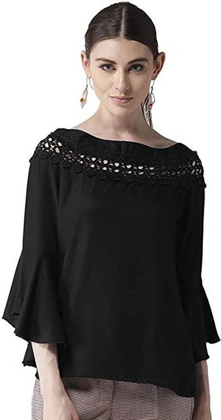 Casual Sleeveless Self Design Women Black Top