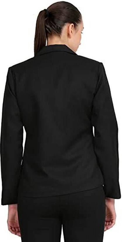 Women Solid Single Breasted Casual Blazer (Black)
