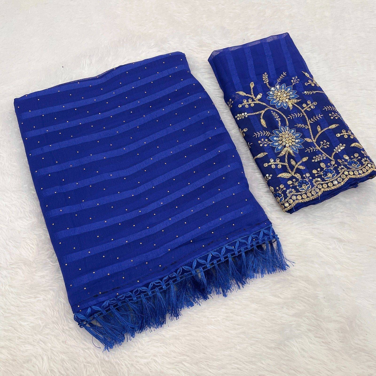 ATHARV Solid/Plain Bollywood Chiffon Saree (Blue)