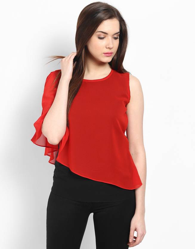 ATHENA Casual Cape Sleeve Solid Women Red Top