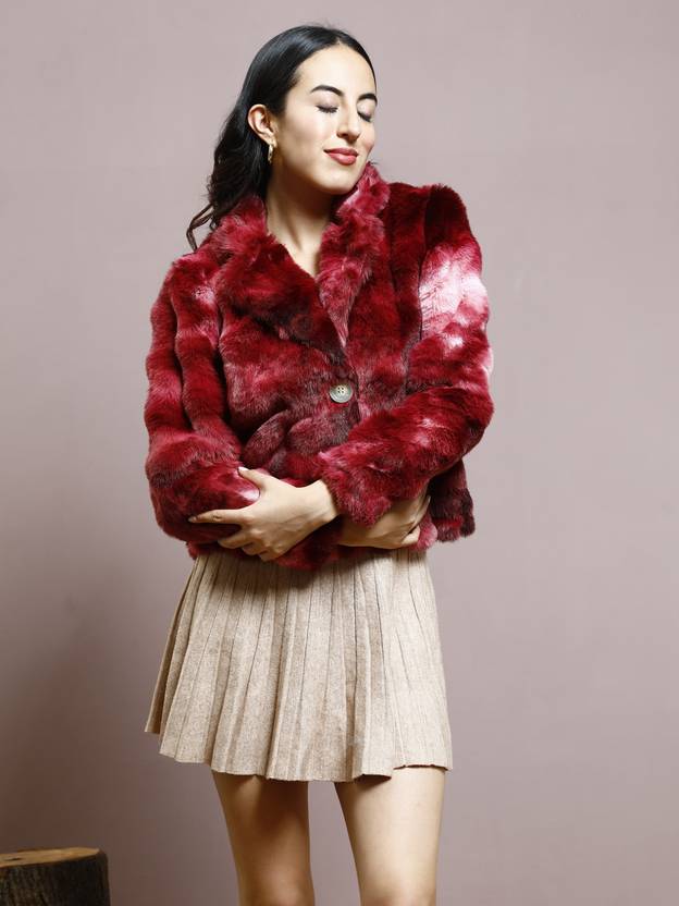 ATHENA Faux Fur Self Design Coat For Women