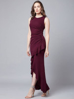 ATHENA Women Asymmetric Maroon Maxi/Full Length Dress