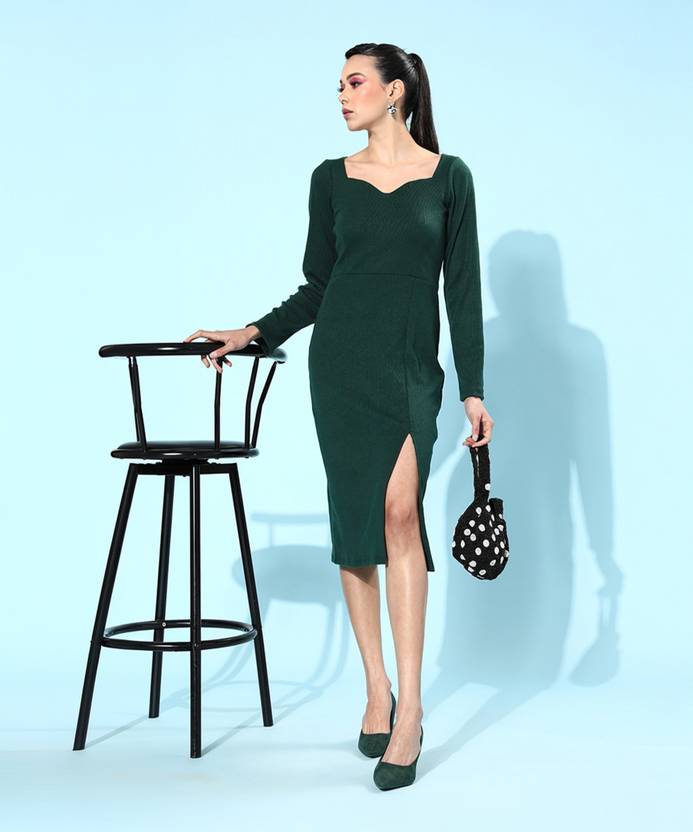 ATHENA Women Bodycon Dark Green Below Knee Dress