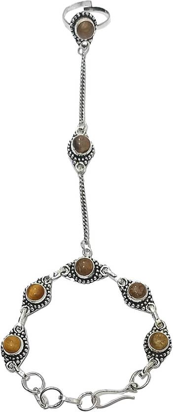 Hath Phool Bracelet Oxidised Silver Chain| Brown Tiger Eye Stone Studded