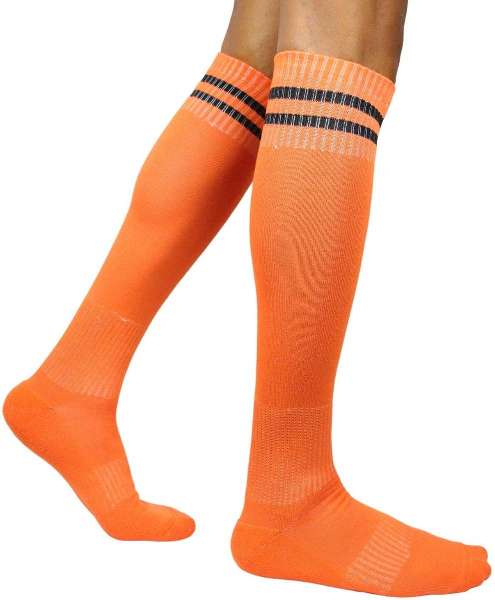 Material: Cotton 70%, polyester 4%, spandex 22%, elastane 4%, Type:Football Knee High Socks, Ideal For: Men, Sales Package: 1 Pair Knee High Stocking/Socks, Color:Orange, Pattern:Striped