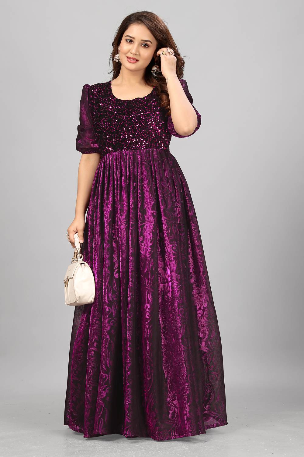 The ATHNICX Georget Sequence Work Gown Top features intricate Georgette embroidery work on the blouse and full sleeves, offering an elegant, traditional look. The gown is designed without a dupatta, focusing on the rich detailing of the Georgette fabric. The top boasts a flared design, providing a comfortable and flattering fit, and comes in a free size, making it suitable for various body types. The combination of delicate embroidery and the soft, flowy texture of the Georgette fabric adds a graceful, timeless appeal to this gown. Perfect for formal occasions, parties, or festive celebrations.