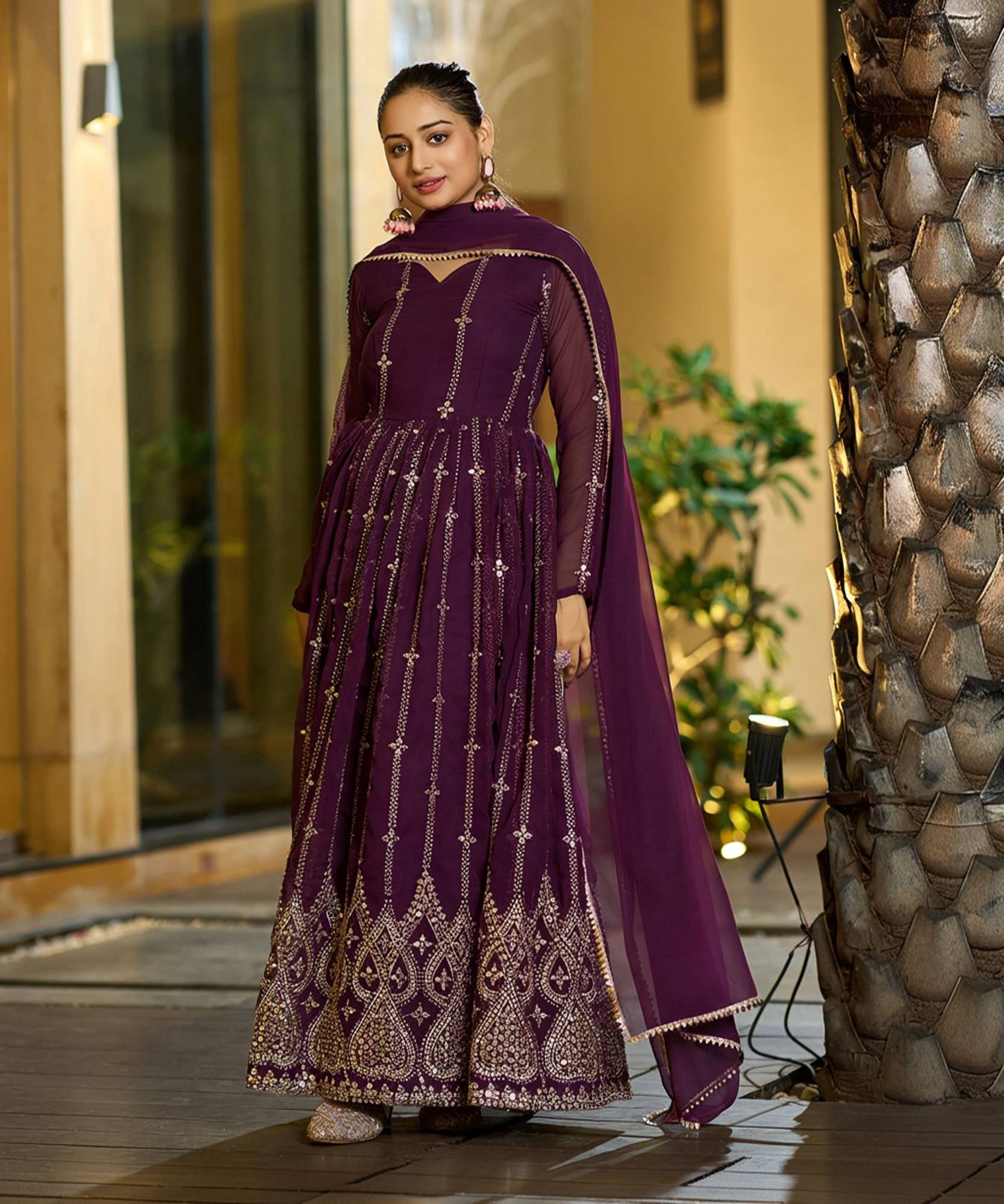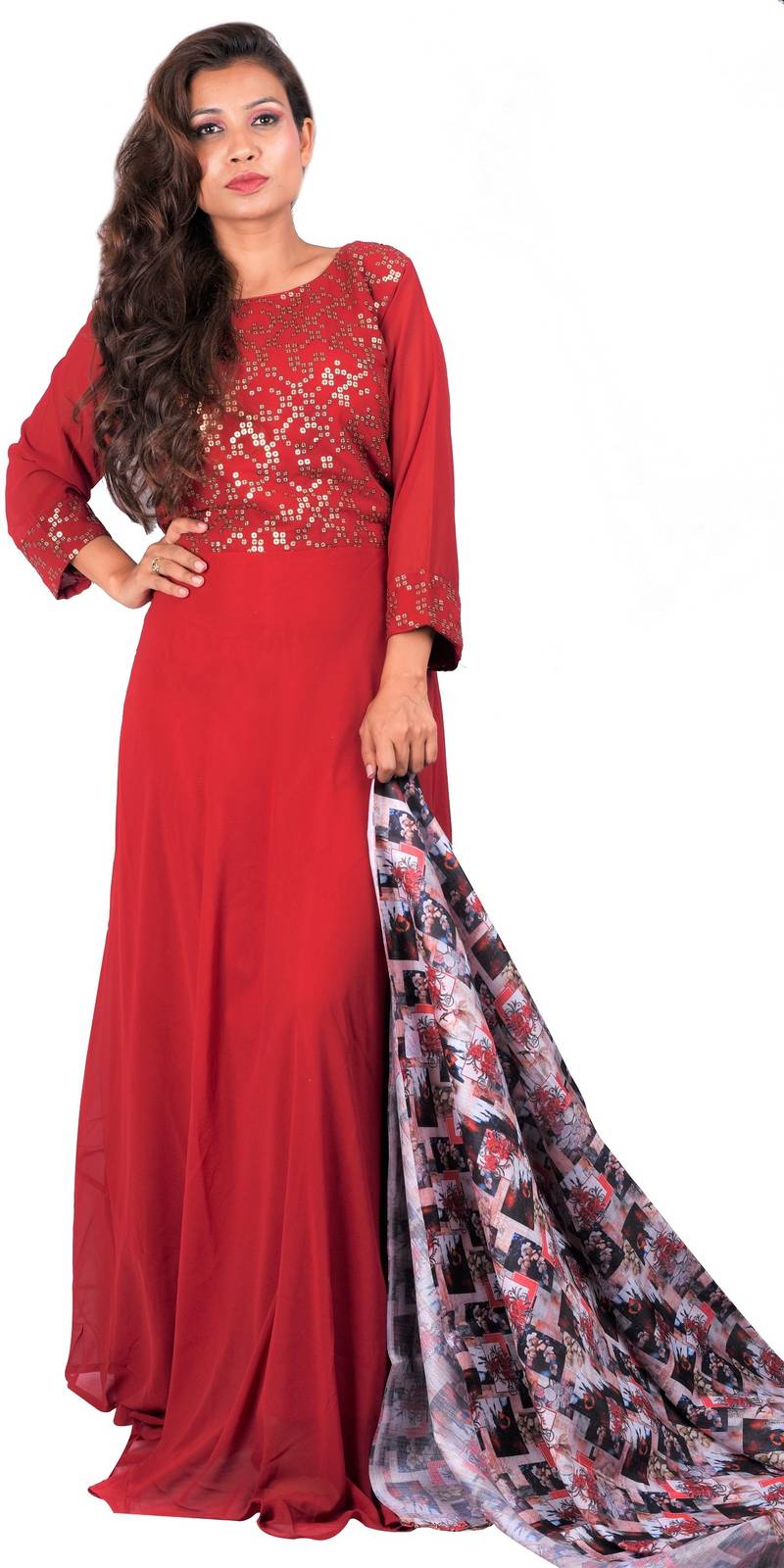 The BMAP Georget Sequence Work Gown Top features intricate Georgette embroidery work on the blouse and full sleeves, offering an elegant, traditional look. The gown is designed without a dupatta, focusing on the rich detailing of the Georgette fabric. The top boasts a flared design, providing a comfortable and flattering fit, and comes in a free size, making it suitable for various body types. The combination of delicate embroidery and the soft, flowy texture of the Georgette fabric adds a graceful, timeless appeal to this gown. Perfect for formal occasions, parties, or festive celebrations.