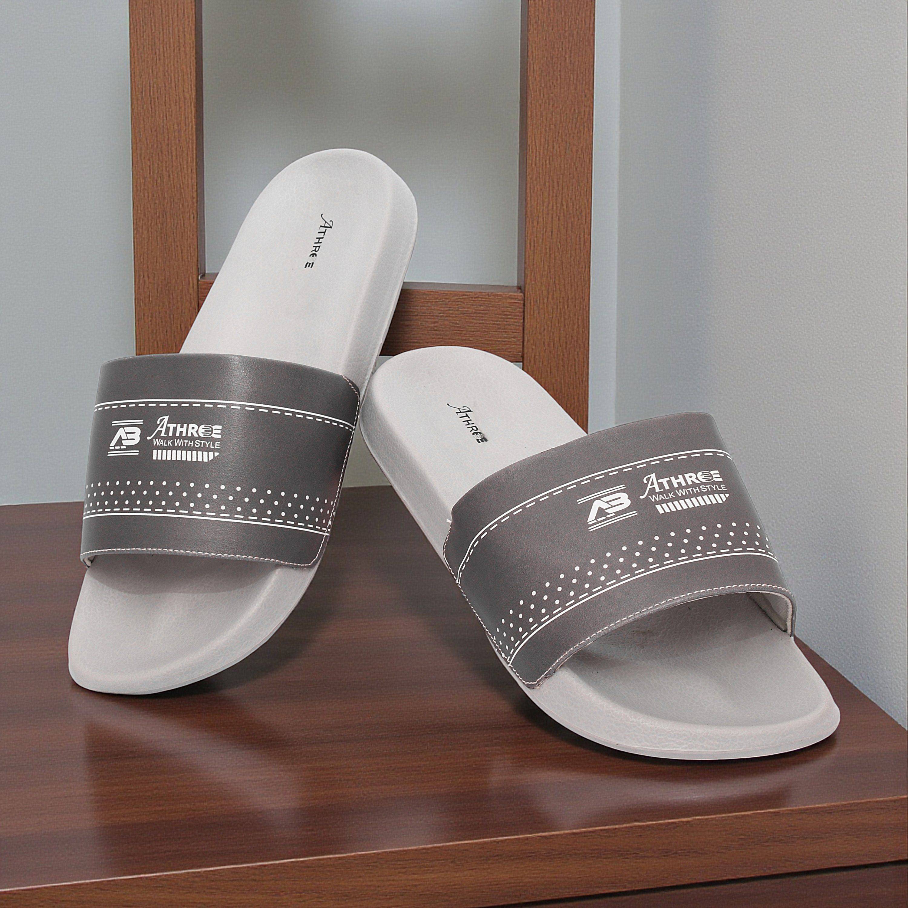Athree men sliders slipper chappal feature a convenient slip on design that is easy to wear for home, bathroom, beach, or outdoor use. Crafted as lightweight and water friendly sliders, they are perfect for all seasons. The anti skid sole provides strong grip on wet and dry surfaces, while the soft cushioned footbed ensures relaxed comfort throughout the day. Ideal for casual daily use, these slider for man gents combine durability, comfort, and simple style for everyday wear