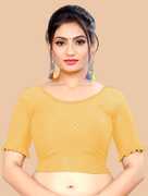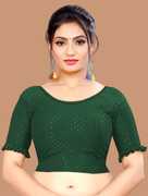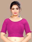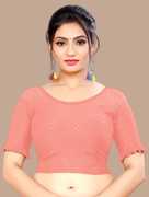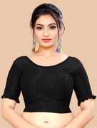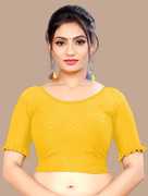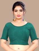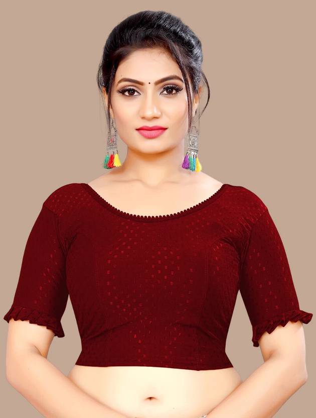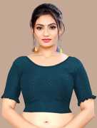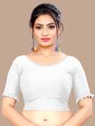 This elbow sleeve dobby blouse crafted from a luxurious cotton lycra blend offers a perfect blend of comfort and style. With a fabric designed for both flexibility and breathability, it ensures all-day ease. The blouse features an elegant round neck design, adding a touch of sophistication to your ensemble. With a blouse length of 15 inches, it strikes a balance between trendy and modest, making it suitable for various occasions. Whether paired with a saree or a skirt, this blouse is sure to elevate your look with its understated charm and versatility.