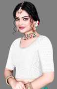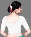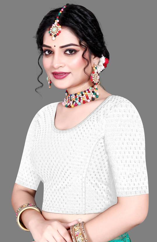 This elbow sleeve dobby blouse crafted from a luxurious cotton lycra blend offers a perfect blend of comfort and style. With a fabric designed for both flexibility and breathability, it ensures all-day ease. The blouse features an elegant round neck design, adding a touch of sophistication to your ensemble. With a blouse length of 15 inches, it strikes a balance between trendy and modest, making it suitable for various occasions. Whether paired with a saree or a skirt, this blouse is sure to elevate your look with its understated charm and versatility.