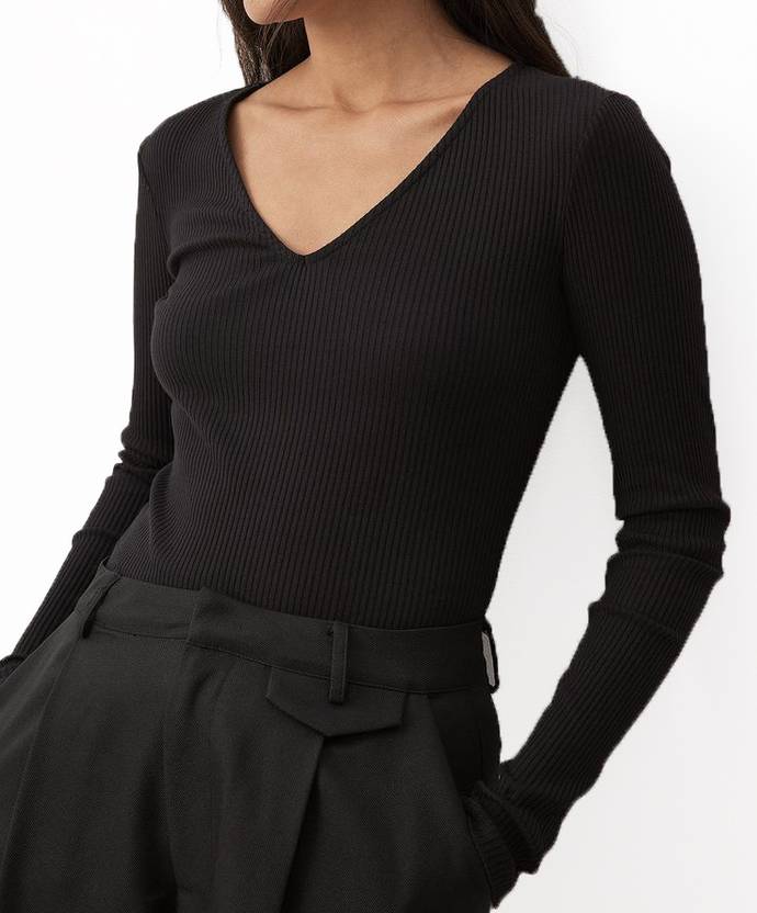 Atiya Fashions Casual Regular Sleeves Solid Women Black Top
