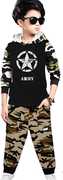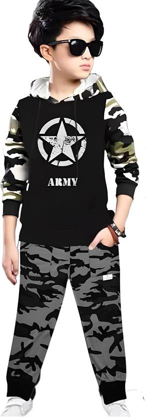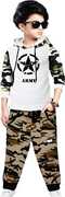 ATLANS Boys Casual T-shirt Track Pants (Black & Grey)