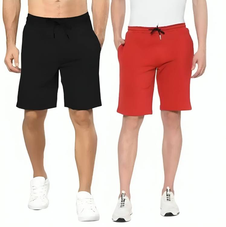 ATLANSCLOTHS Pack of 2 Solid Men Multicolor Basic Shorts