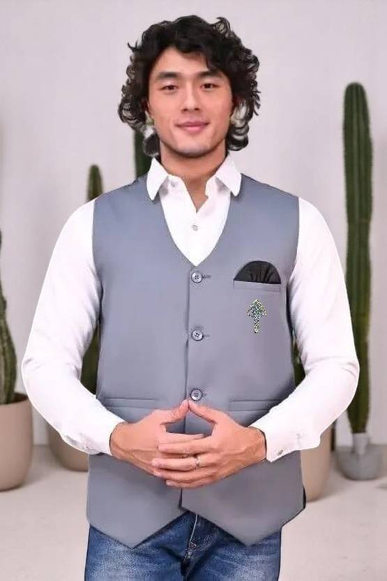 Elevate your semi-formal style with the Waistcoat, featuring a sleek silhouette, elegant design, and a statement brooch. Tailored in a premium black fabric with a rich satin lining, this waistcoat includes a stylish maroon pocket square and decorative brooch, making it ideal for festive occasions, parties, weddings, or evening events. Pair it with a crisp white shirt and denim or trousers for a sharp Indo-western appeal. Men's Black Waistcoat with Brooch, Indo Western Waistcoat for Men, Partywear Waistcoat with Pocket Square, Stylish Sleeveless Nehru Jacket, Festive Wear for Men, Slim Fit Waistcoat Black, Brooch Waistcoat for Wedding, Black Formal Waistcoat Men, Designer Men’s Waistcoat Semi Formal