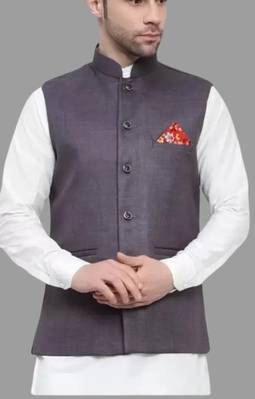 ATLY Waistcoat gives nothing less than a nawabi look. The mandarin collar is followed by front buttoned front closure. The designer buttons give a very royal look and one can wear this bandhgala on a crisp white shirt. A pocket square adds elegance to the overall assimilation of this look.