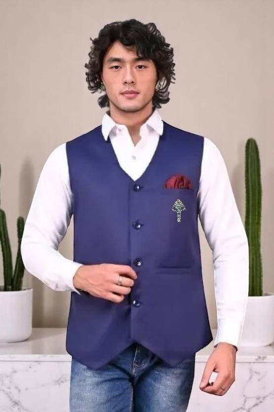 Elevate your semi-formal style with the D320 Waistcoat, featuring a sleek silhouette, elegant design, and a statement brooch. Tailored in a premium black fabric with a rich satin lining, this waistcoat includes a stylish maroon pocket square and decorative brooch, making it ideal for festive occasions, parties, weddings, or evening events. Pair it with a crisp white shirt and denim or trousers for a sharp Indo-western appeal. Men's Black Waistcoat with Brooch, Indo Western Waistcoat for Men, Partywear Waistcoat with Pocket Square, Stylish Sleeveless Nehru Jacket, Festive Wear for Men, Slim Fit Waistcoat Black, Brooch Waistcoat for Wedding, Black Formal Waistcoat Men, Designer Men’s Waistcoat Semi Formal