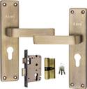 Material of Plate: Iron, Finish: Brass Antique, Material of Handle: Iron, Total length of Plate: [Length:20.3 cm, Width: 4.6 cm, Mechanism Spring: Spiral Spring, Stainless Steel 304],
