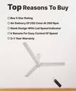 Integrated with an inbuilt AtomSense algorithm and a brushless DC motor, this fan consumes just up to 28 W power even at its high-speed setting of up to five, avoiding unnecessary motor heat generation. And, it showcases an excellent power factor of up to 0.98 and functions efficiently within a wide voltage range of 165V to up to 285V.