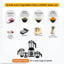 Powered by an Intelligent BLDC Motor, the Atomberg Zenova Mixer Grinder grinds every ingredient that a 1000 W mixer can. It features a unique Coarse Mode that replicates traditional sil-batta/ammikallu textures—ideal for coarse chutneys, dips & masalas. The mixer grinder comes with 4 high-quality, multifunctional jars: 1.5 L liquidizing, 1 L multipurpose, 0.5 L chutney and spice grinding, and a unique 0.5 L chopper jar—for all kitchen needs. The Intelligent Motor offers versatile speed ranges, making it a one-stop solution for everything from chopping to fine grinding. Anti-gravity lid locks enable hands-free operation. Designed for a safe and worry-free experience, it has advanced safety features like Jar Lock Detection, Easy Fault Indication & No Auto-restart after power cuts. It features a ventless, compact design that ensures hassle-free cleaning and easy storage.
