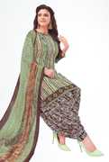Flaunt a new ethnic look with this dress material. This Italian Leon Crepe suit is beautifully adorned with Print work comes along with solid Italian Leon Crepe bottom and martina chiffon dupatta makes it appear more adorning. Women can buy this suit to wear for their upcoming festivals, homely functions, parties, kitties, weekend get together. Get this unstitched suit stitched according to your fit and comfort. Team it with stylish accessories to make your looks more beautiful. Note:- The actual product may differ slightly in color and design from the one illustrated in the images when compared with computer or mobile screen.