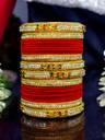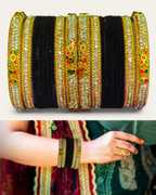 Velvet Stone Chudi Bangles Set - Elegant Velvet and Stonework Bridal Bangles