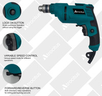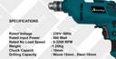 Operating at 220V, this corded drill ensures consistent power and performance throughout every task. Its copper armature enhances durability and heat dissipation and extends the tool’s lifespan and reliability. Also, its pistol grip handle allows you to have an ergonomic grip while drilling, ensuring comfort and safety.