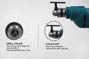 This pistol grip drill is engineered for comfort and control, featuring an ergonomic handle that provides a secure grip during extended use. Its chuck key allows for quick and easy bit changes, enhancing your efficiency on the job. Plus, the drill chuck has a clamping diametre of up to 10 mm, which helps with stability while drilling.