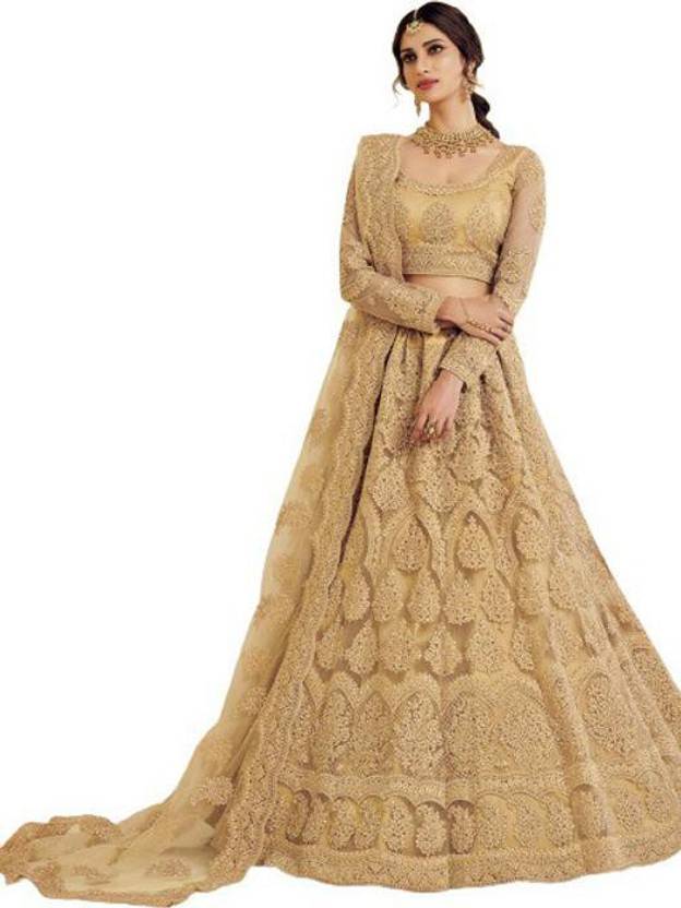 Embroidered Semi Stitched Lehenga Choli (Beige)