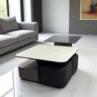 THE ATTIC The Attic Kingston Coffee Table Set with 2 stools, solid wood coffee table Solid Wood Coffee Table (Finish Color - Warm Grey, White & Charcoal, Pre-assembled)