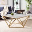 THE ATTIC Prague Stone Coffee Table (Finish Color - Gold Metal + Banswara Marble, Pre-assembled)