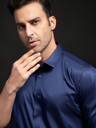 ATTIREVAL Men Solid Formal Dark Blue Shirt
