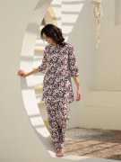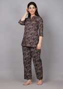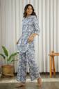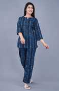 Attnico Women Printed Blue, White Top & Pyjama Set