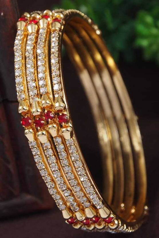 Atulya Brass Diamond Gold-plated Bangle Set (Pack of 4)