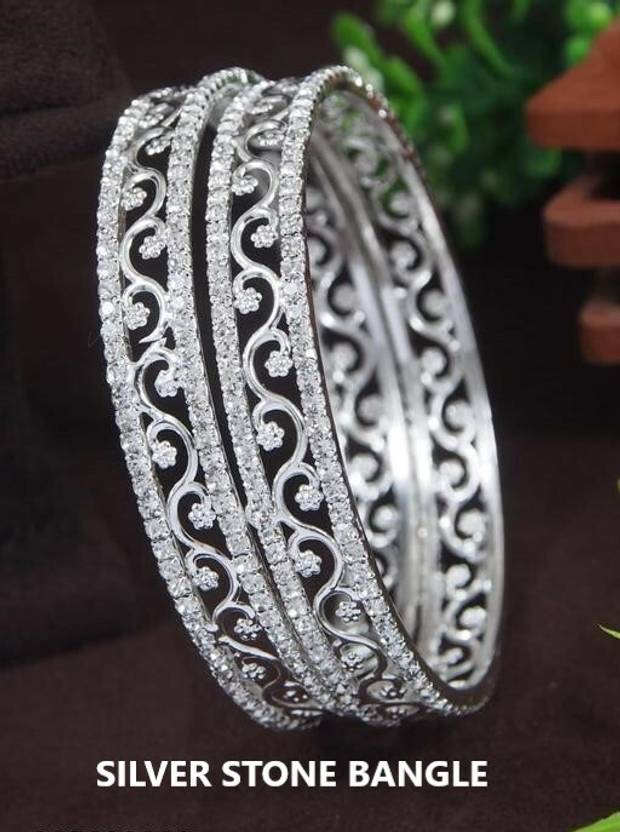 Atulya Brass Diamond Silver Bangle (Pack of 2)