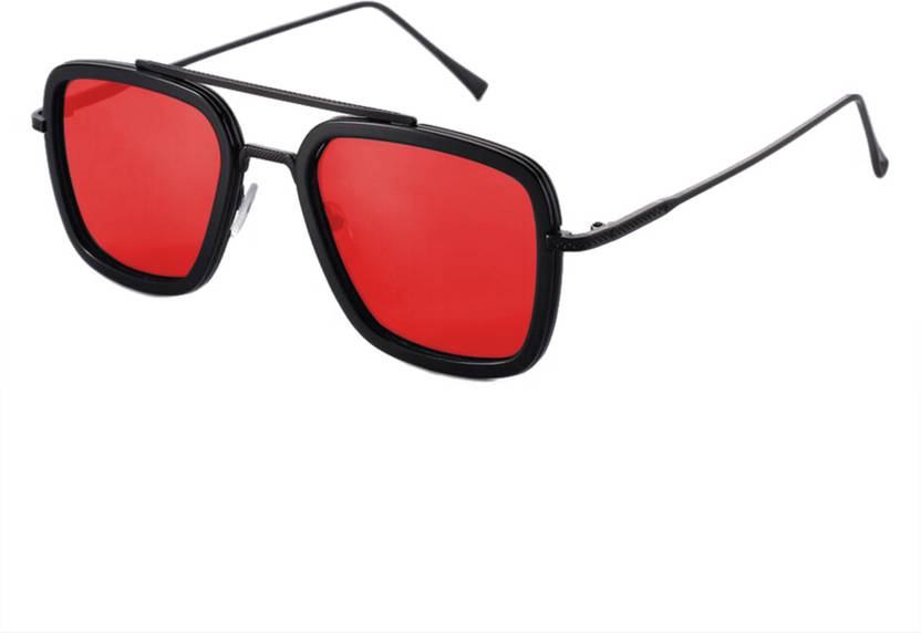 Augen Retro Square Sunglasses (For Men & Women, Red)
