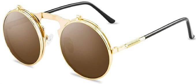 Uv 400 Protected Flip Up Steampunk Retro Vintage Round Unisex UV Protected Sunglasses