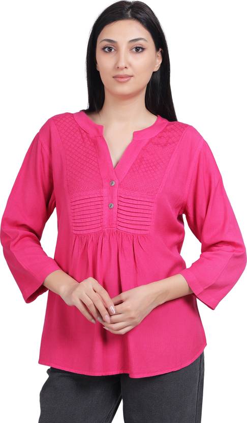 auglle Casual Regular Sleeves Solid Women Pink Top