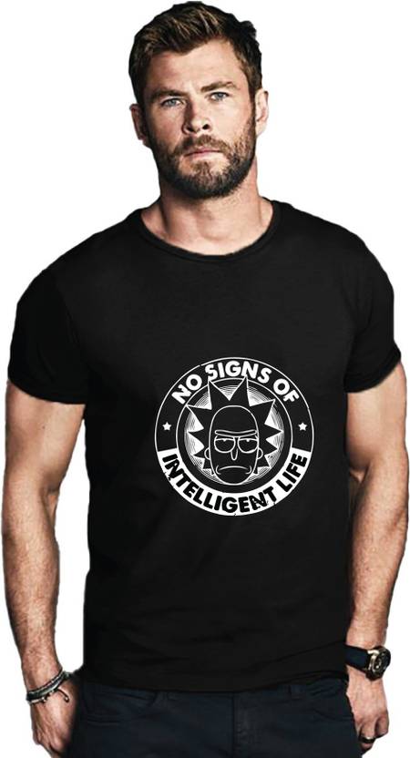 aukurban Men Printed Round Neck Polyester Black T-Shirt