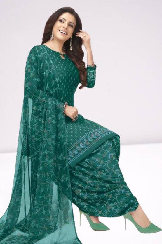 Flaunt a new ethnic look with this dress material. This Italian Leon Crepe suit is beautifully adorned with Print work comes along with solid Italian Leon Crepe bottom and martina chiffon dupatta makes it appear more adorning. Women can buy this suit to wear for their upcoming festivals, homely functions, parties, kitties, weekend get together. Get this unstitched suit stitched according to your fit and comfort. Team it with stylish accessories to make your looks more beautiful. Note:- The actual product may differ slightly in color and design from the one illustrated in the images when compared with computer or mobile screen.