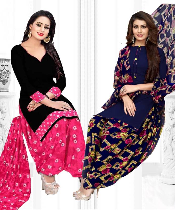 Unstitched Crepe Salwar Suit Material Printed