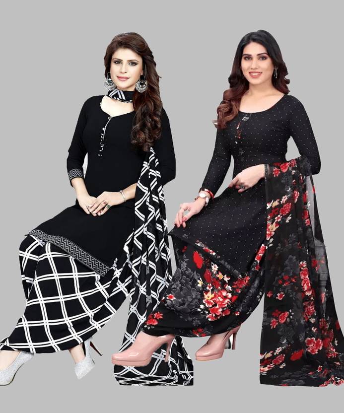 Crepe Printed Unstiched Dress Material. Add style to your Daily Wear Collection with this Printed Dress material Salwar suit. Two Unstitched Salwar, Two Unstitched Top, Two Dupatta.Top & Bottom Fabric : American Crepe, Dupatta Fabric : Martina You can use it for daily wear purpose it will give you immense comfort and fresh styling look.