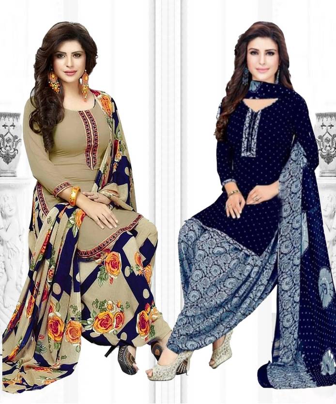 Womens Crepe Printed Unstiched Dress Material. Add style to your Daily Wear Collection with this Printed Dress material Salwar suit. 2 Unstitched Salwar, 2 Unstitched Top, 2 Dupatta.Top & Bottom Fabric : American Crepe, Dupatta Fabric : Martina You can use it for daily wear purpose it will give you immense comfort and fresh styling look.