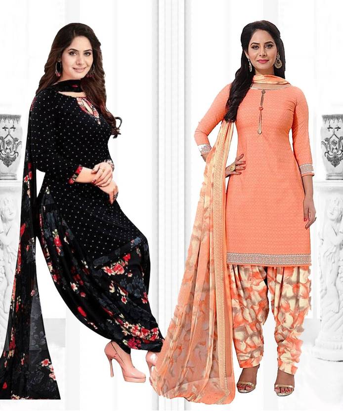 Unstitched Crepe Salwar Suit Material Printed