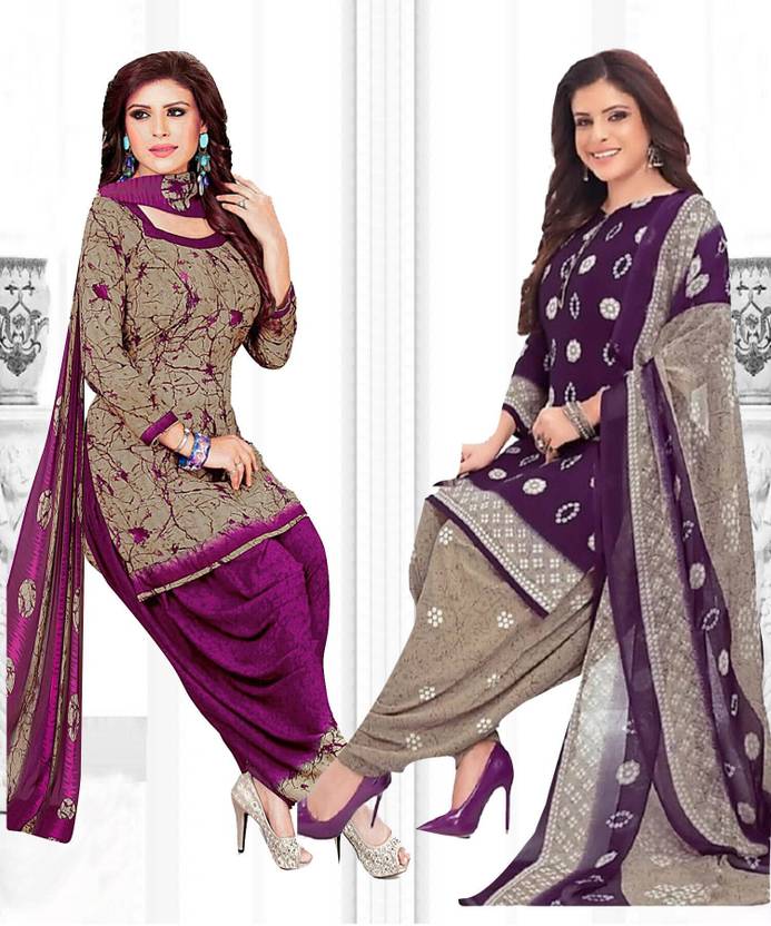 Unstitched Crepe Salwar Suit Material Printed