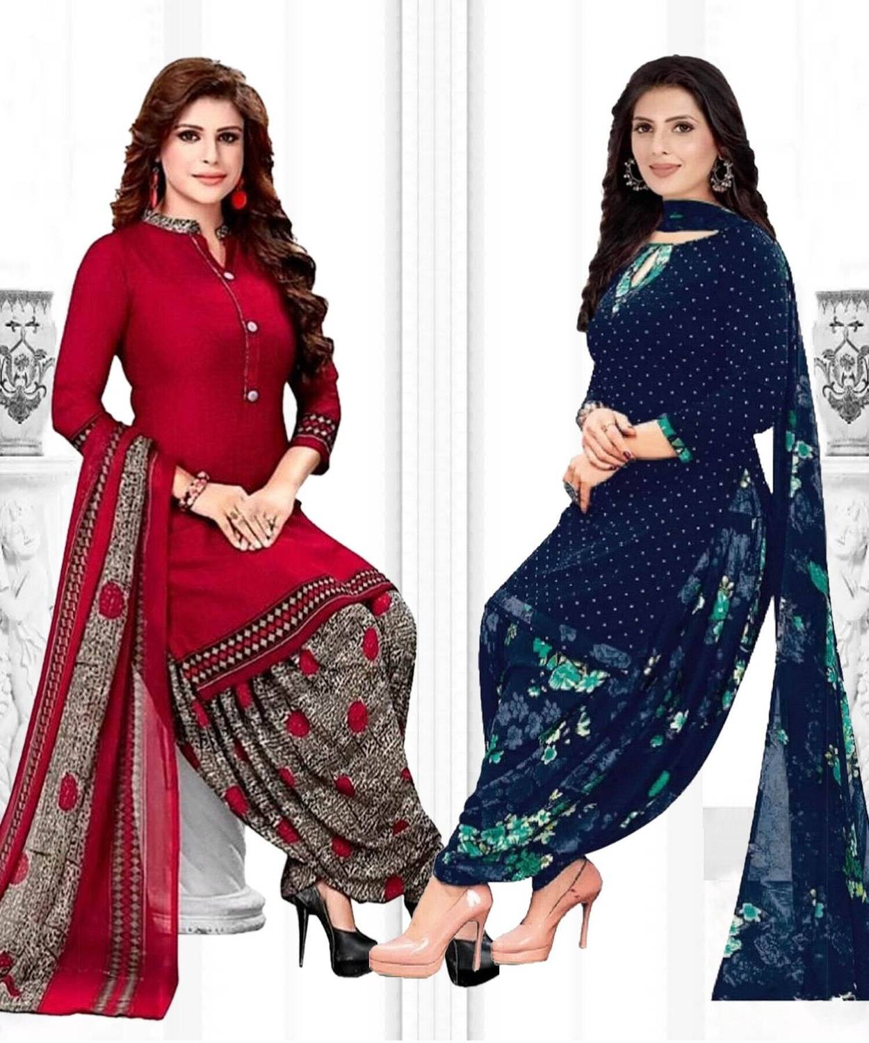 Threads Womens Cotton Blend Printed Unstiched Dress Material. Add style to your Daily Wear Collection with this Printed Dress material Salwar suit. Two Unstitched Salwar, Two Unstitched Top, Two Dupatta. Top & Bottom Fabric : Cotton Blend, Dupatta Fabric : Martina Chiffon, You can use it for daily wear purpose it will give you immense comfort and fresh styling look.